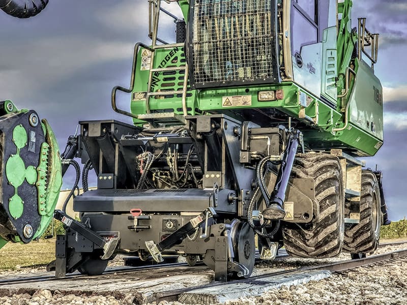 Get on the rails fast with the Dymax Rail Rider H-W1. This hydrostatically driven hi rail attachment quickly adapts to wheel-type hydraulic excavators. There’s no cutting, welding or modifying of any kind, unless you want us to like the other guys do.