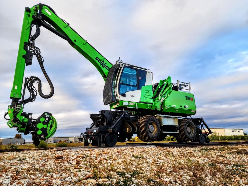 OEM Stabilizer Modified + Clamp – C Rail Rider Hydrostatic-W1 series mount with modified factory stabilizers with rail clamps-Sennebogen 718–Hydraulic Excavator-20 ton class 17,500 |