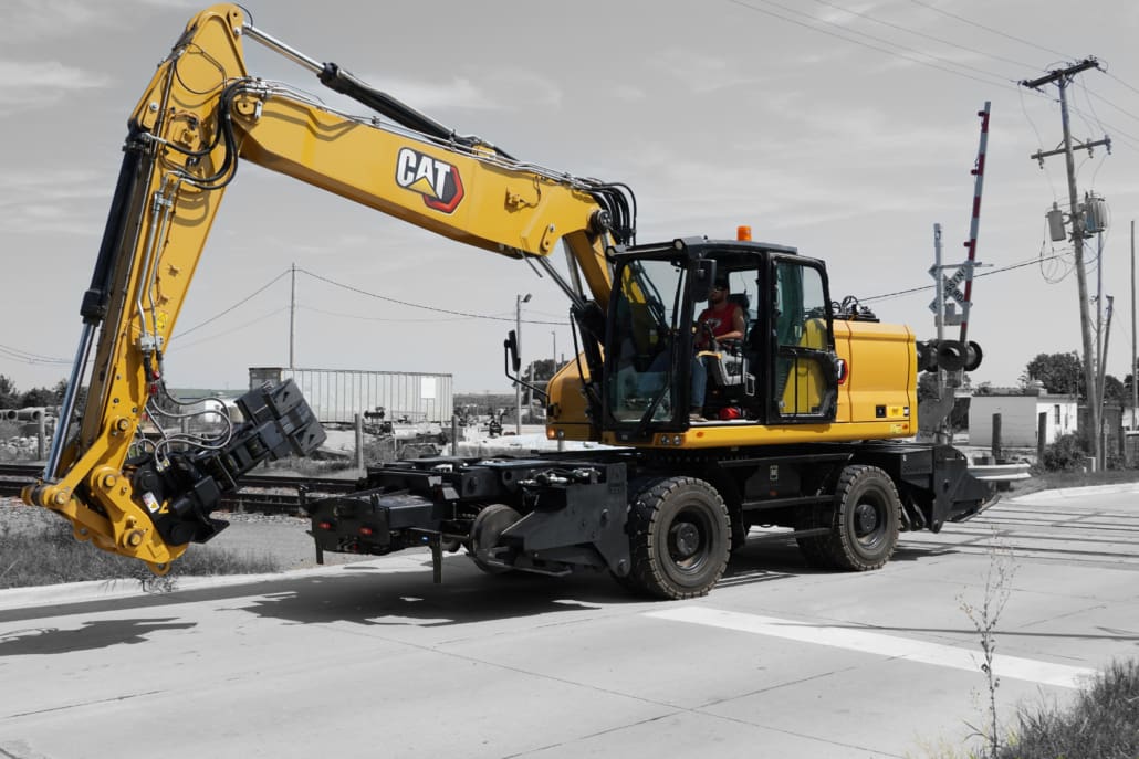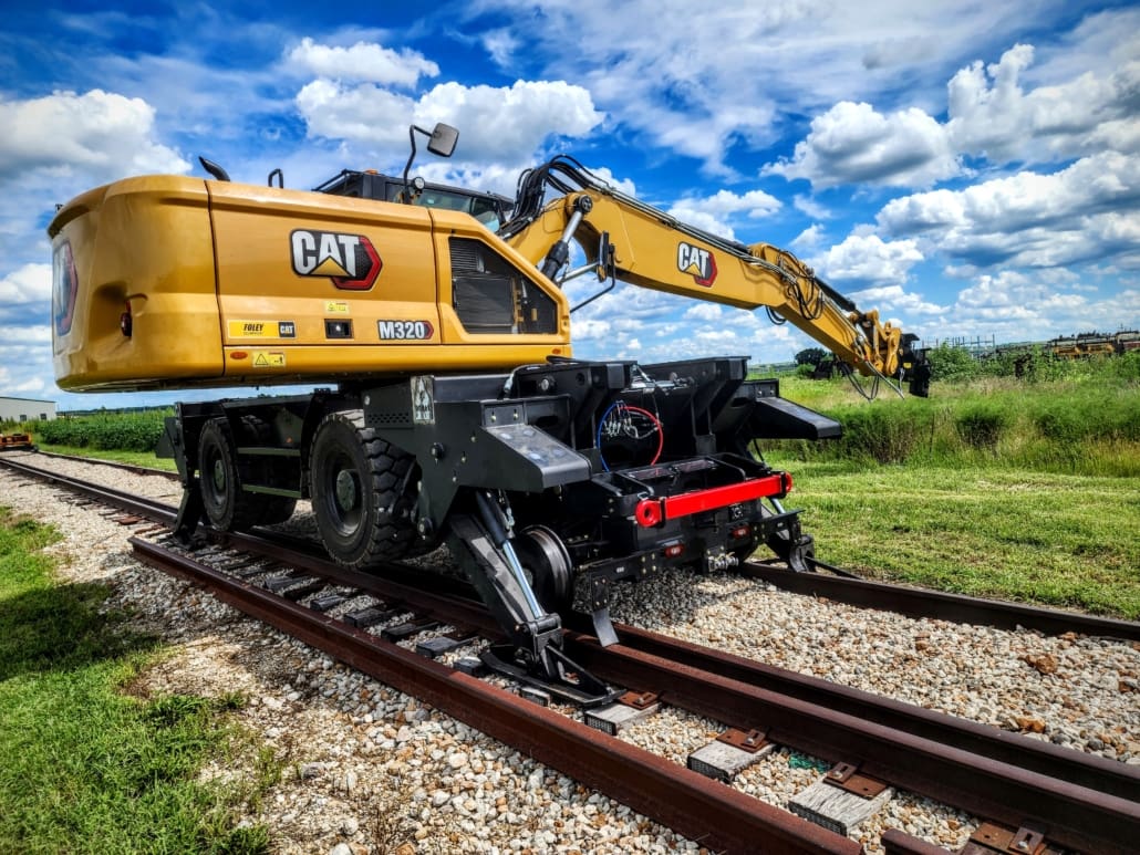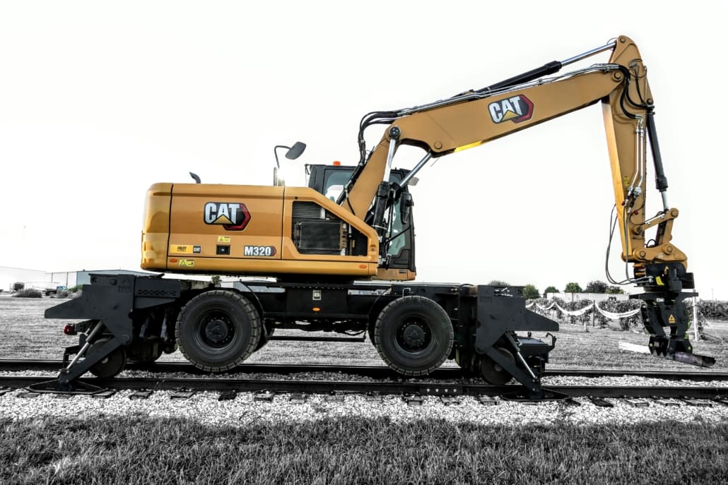 OEM Stabilizer Modified + Clamp – C Rail Rider Hydrostatic-W1 series mount with modified OEM stabilizer arm and rail clamps-Caterpillar M320–Hydraulic Excavator-20 ton class 17,500 |