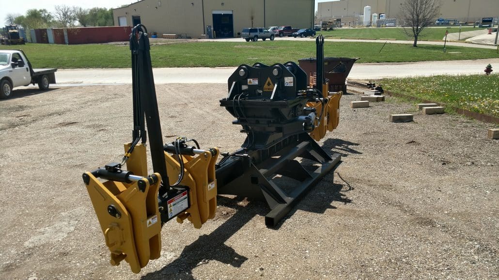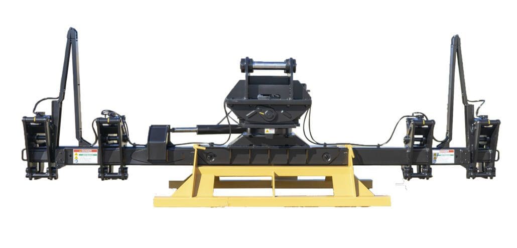 The Dymax Rail Handler LG series safely grabs rail from piles without the need for workers to attach lifting straps or chains. Handle up to 90 feet of rail safely. The Dymax Rail Handler LG quickly attaches to hydraulic excavators and delivers rail to flash butt welders nearly ten times faster compared to using manual rigging methods such as cranes. Operators can also attach to many popular material handling machines for unloading railcars or placing jointed rail to and from the rail line. A Dymax Rail Handler LG significantly improves efficiency and safety.