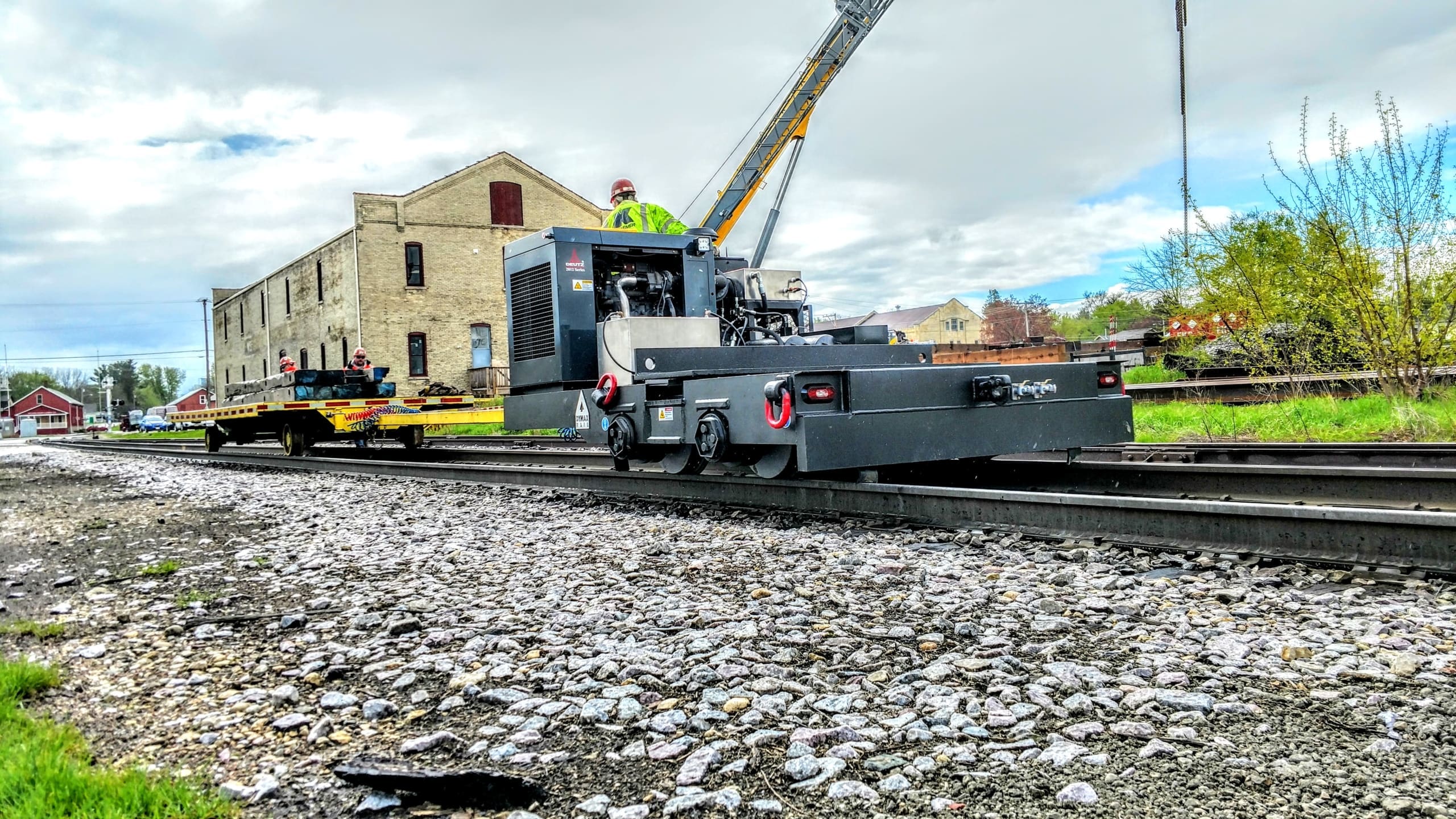 Diesel-powered hydraulic system ensures reliable performance for transporting equipment to and from remote railway worksites.